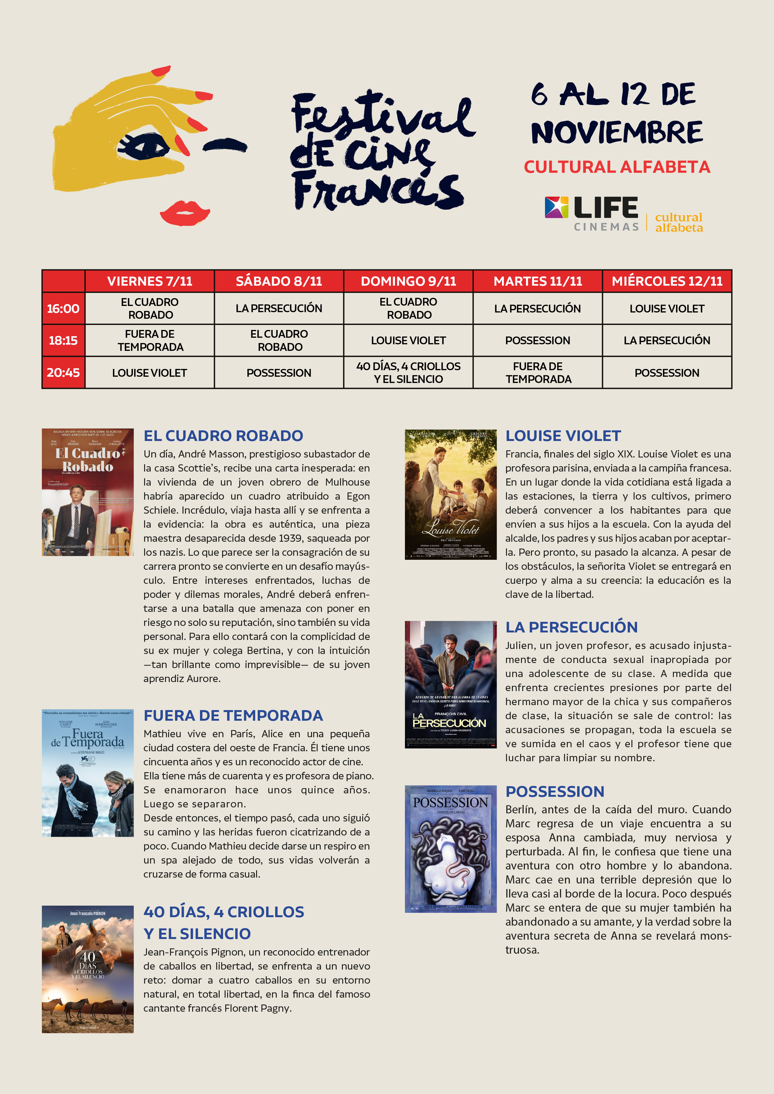 Del 7 al 12 de Noviembre tendrá lugar la edición 2025 del Festival de Cine Francés en Life Cultural Alfabeta. Una selección de películas curadas especialmente para este festival, con algunas de las películas más renombradas del año.